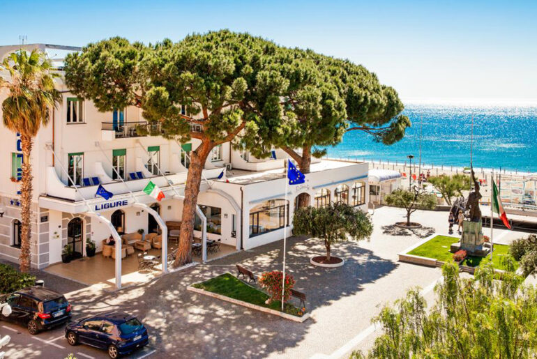 Situato sulla piazza centrale di Spotorno, affacciato direttamente sul Mar Ligure, l’albergo è dotato di camere con terrazzi o balconi vista mare