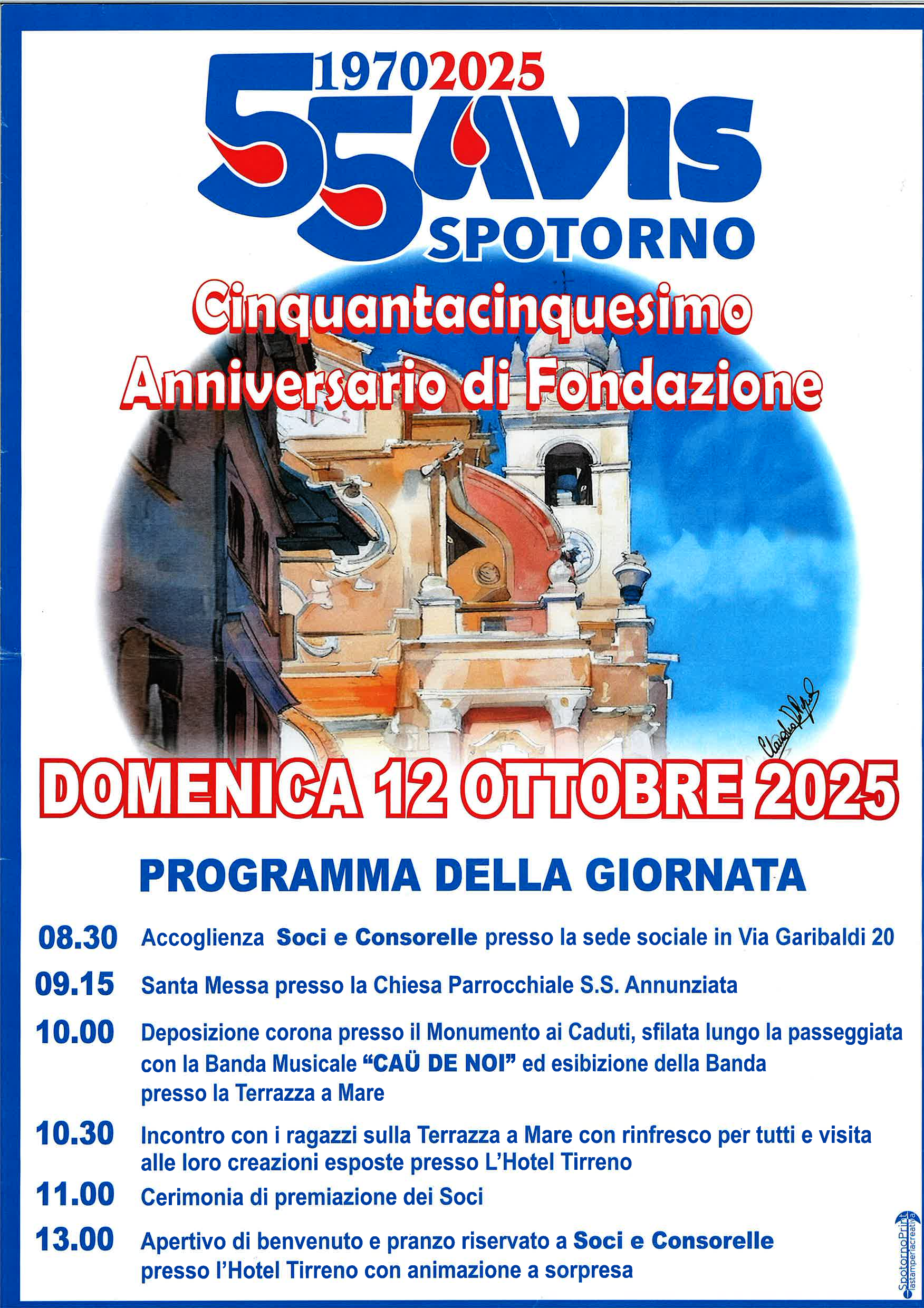 Domenica 12 Ottobre Spotorno festeggia i 55 anni di attività dell’Associazione Avis di Spotorno.