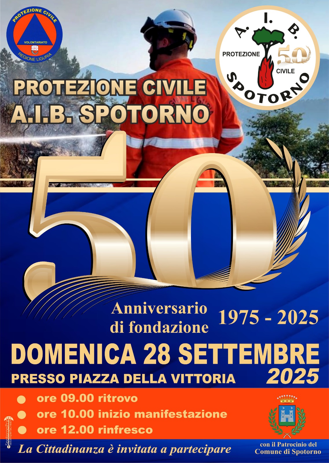 Domenica 28 Settembre la cittadinanza è invitata in Piazza della Vittoria a festeggiare i 50 anni di fondazione della A.I.B. di Spotorno con il seguente programma: