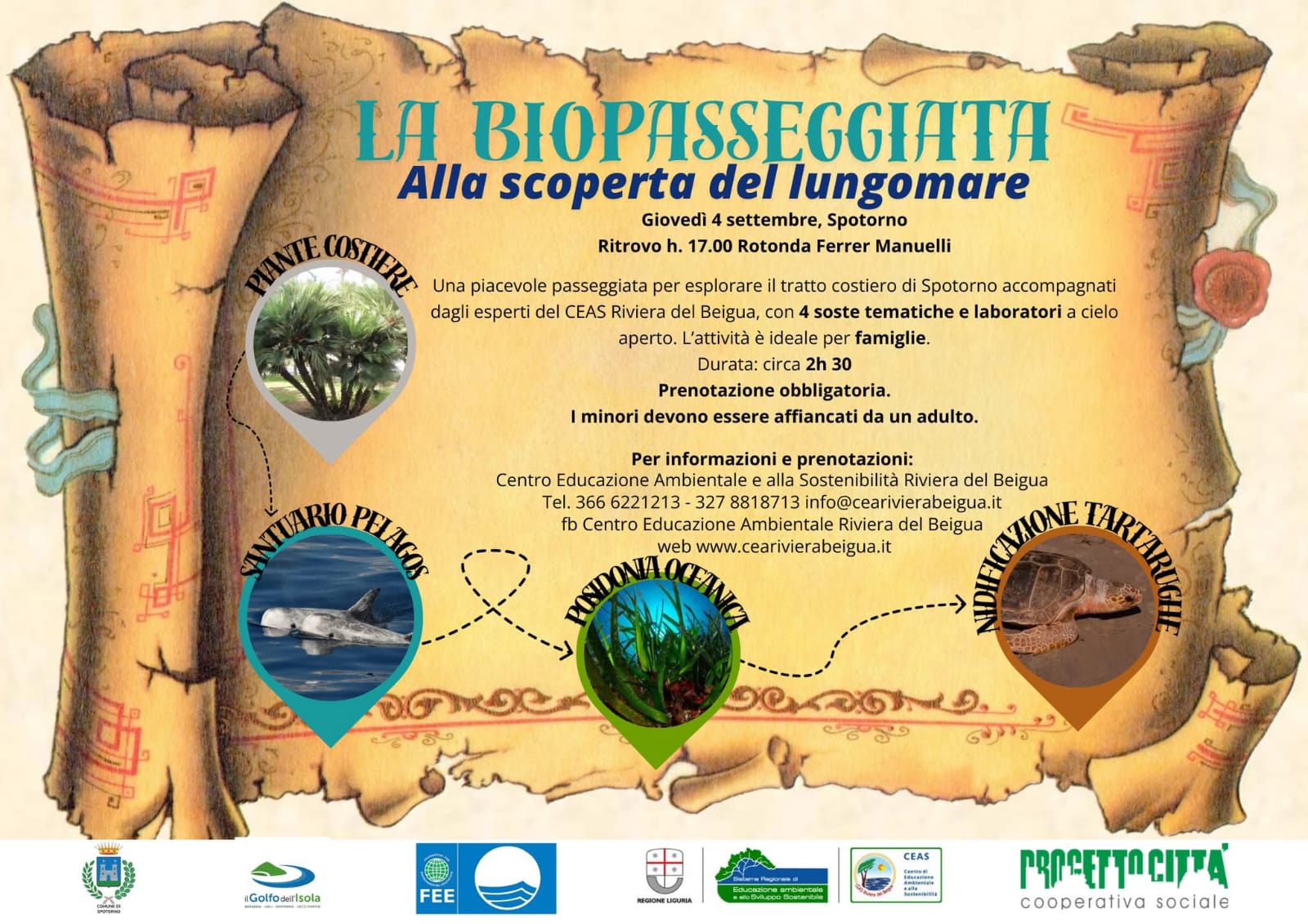 Il Centro Educazione Ambientale CEA Riviera del Beigua con il Comune di Spotorno propongono una Bio passeggiata sul Lungomare di Spotorno Giovedì 4 Settembre alle ore 17.00 con partenza dalla Rotonda Ferrer Manuelli.