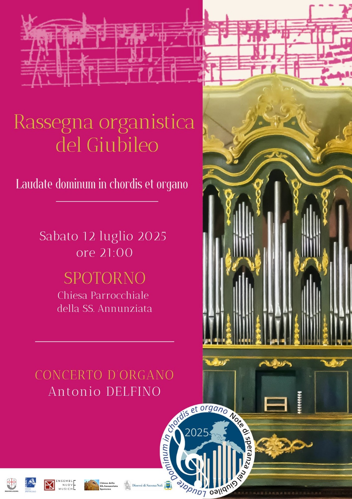 Sabato 12 luglio, concerto d’organo per la rassegna organistica del Giubileo, Laudate dominum in chordis et organo.