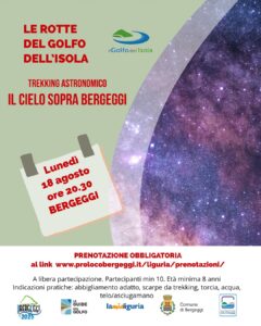Trekking astronomico sui sentieri di Bergeggi in compagnia delle Guide del Golfo e del Prof.Ugo Ghione che ci guiderà in un viaggio alla scoperta di costellazioni, pianeti e stelle.