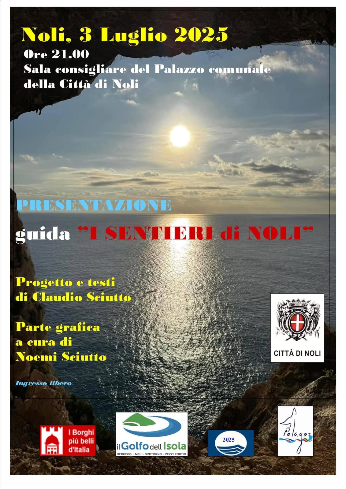 Giovedì 3 luglio alle ore 21.00 presso la Sala consigliare del Palazzo comunale della Città di Noli, presentazione della guida “I SENTIERI DI NOLI”.