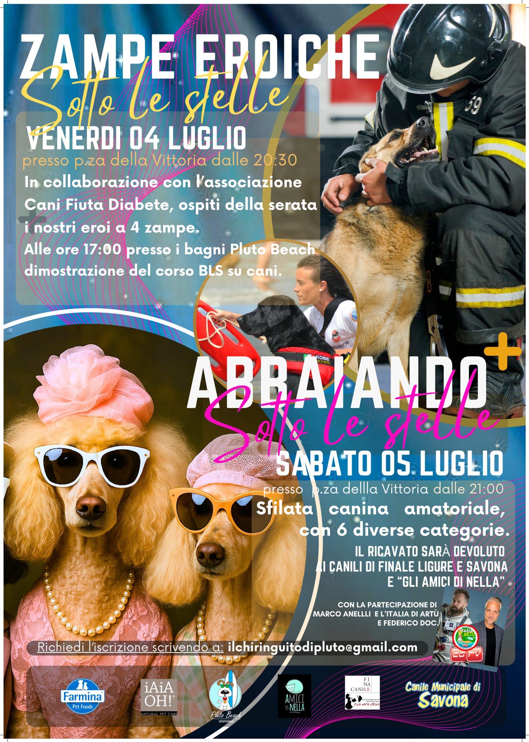 Venerdì 4 luglio alle ore 20.30, presso Piazza della Vittoria, ci sarà “Zampe Eroiche” che avrà per protagonisti i nostri eroi a 4 zampe