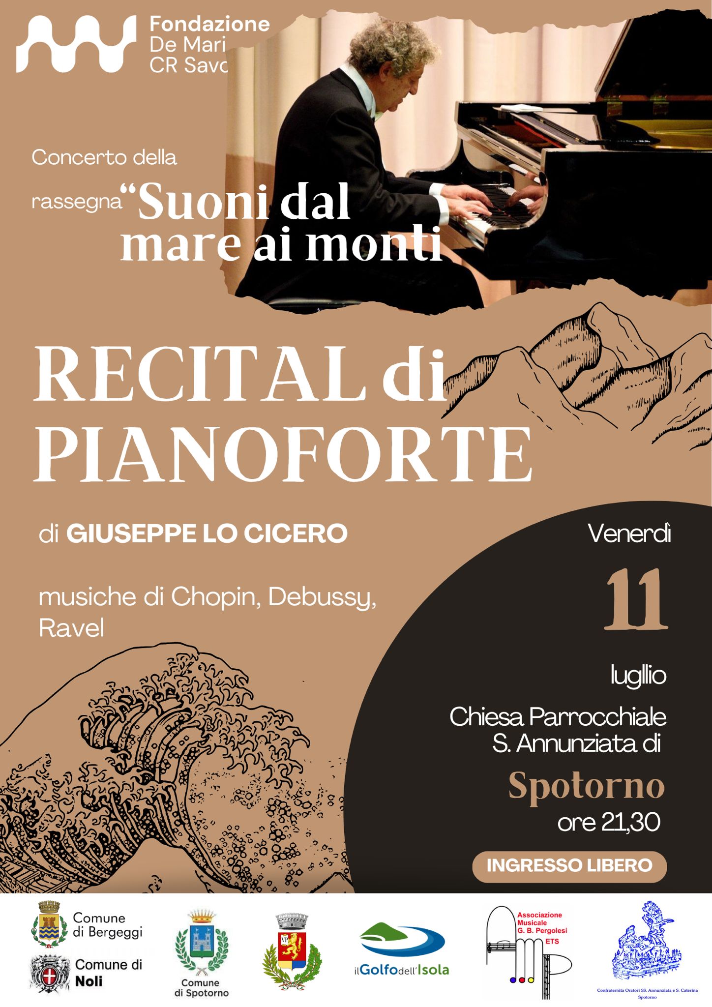 Giovedì 10 luglio ore 21.15 presso la Cattedrale San Pietro di Noli, a cura della Società Filarmonica Amici dell'Arte, Il concerto della Rassegna " Musica e Parole", Recital di pianoforte. Ospite il Maestro Giuseppe Lo Cicero del Teatro Comunale di Marsala. Ingresso libero.