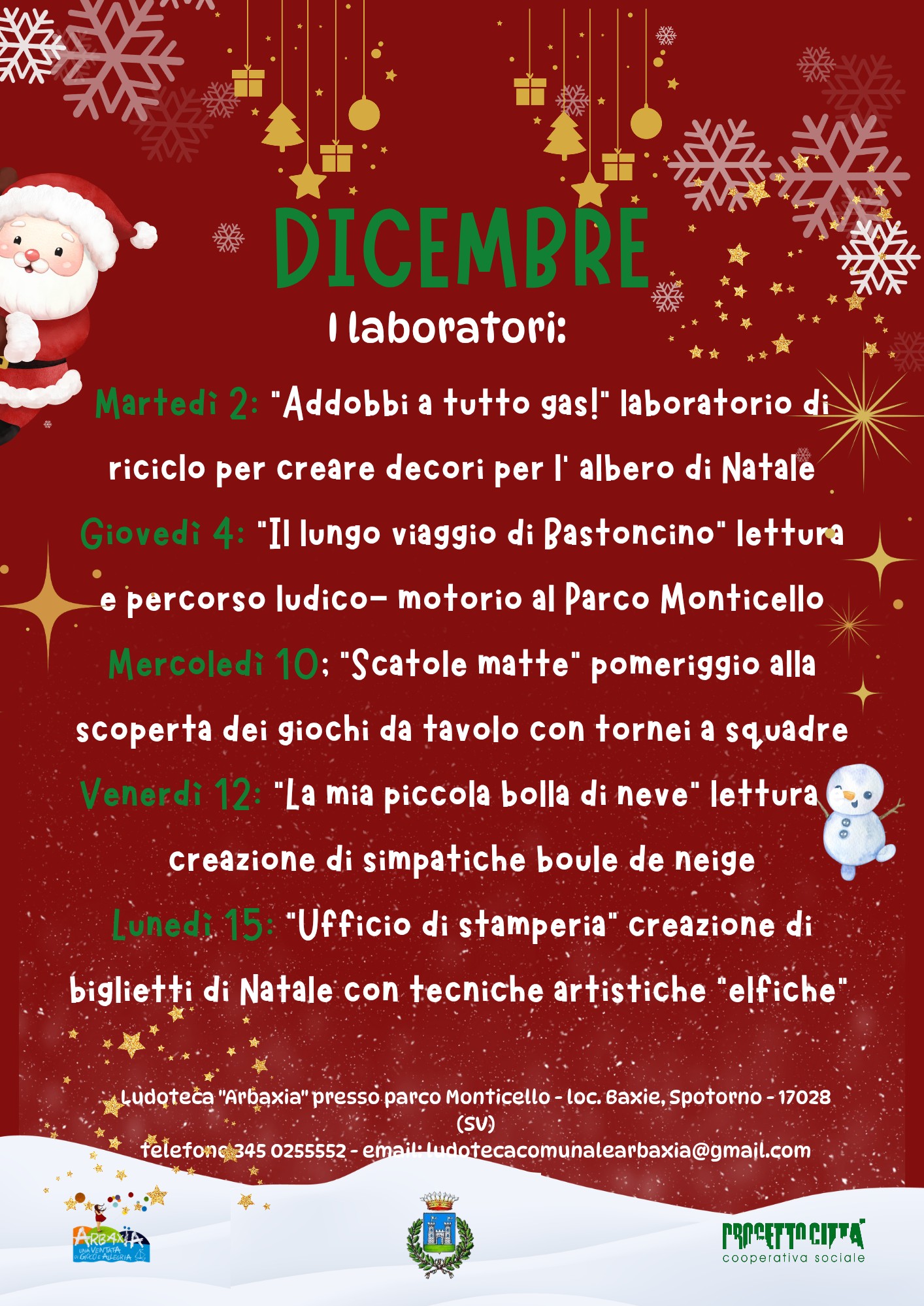 Venerdì 12 dicembre 2025 presso la Ludoteca "Arbaxia" si terrà "La mia piccola bolla di neve": lettura e creazione di simpatiche boule de neige Per informazioni: tel: 3450255552 email: ludotecacomunalearbaxia@gmail.com