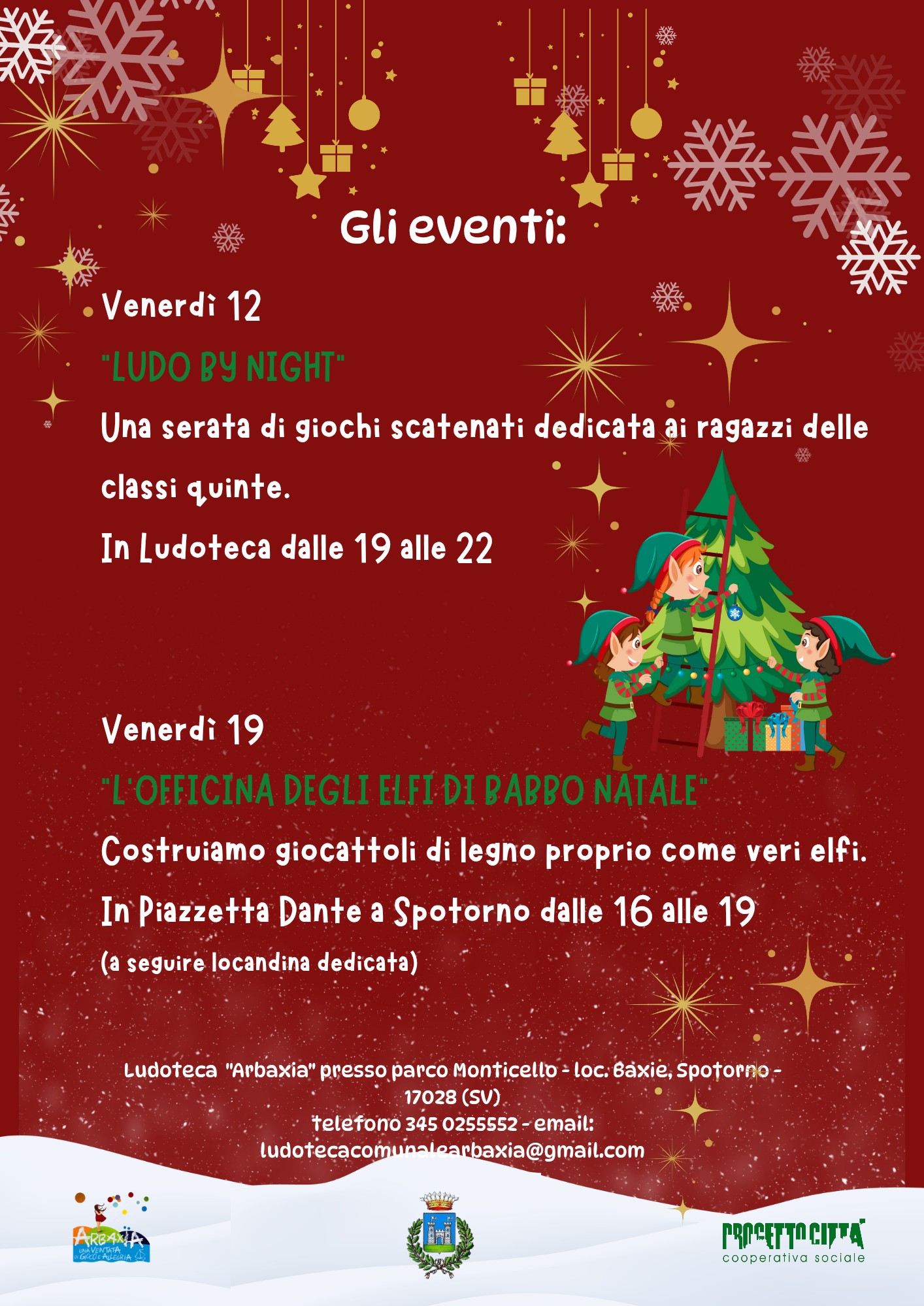 Venerdì 12 dicembre 2025 dalle ore 19 alle ore 22 presso la Ludoteca "Arbaxia" si terrà una serata di giochi scatenati dedicati ai ragazzi delle classi quinte: Per informazioni: tel: