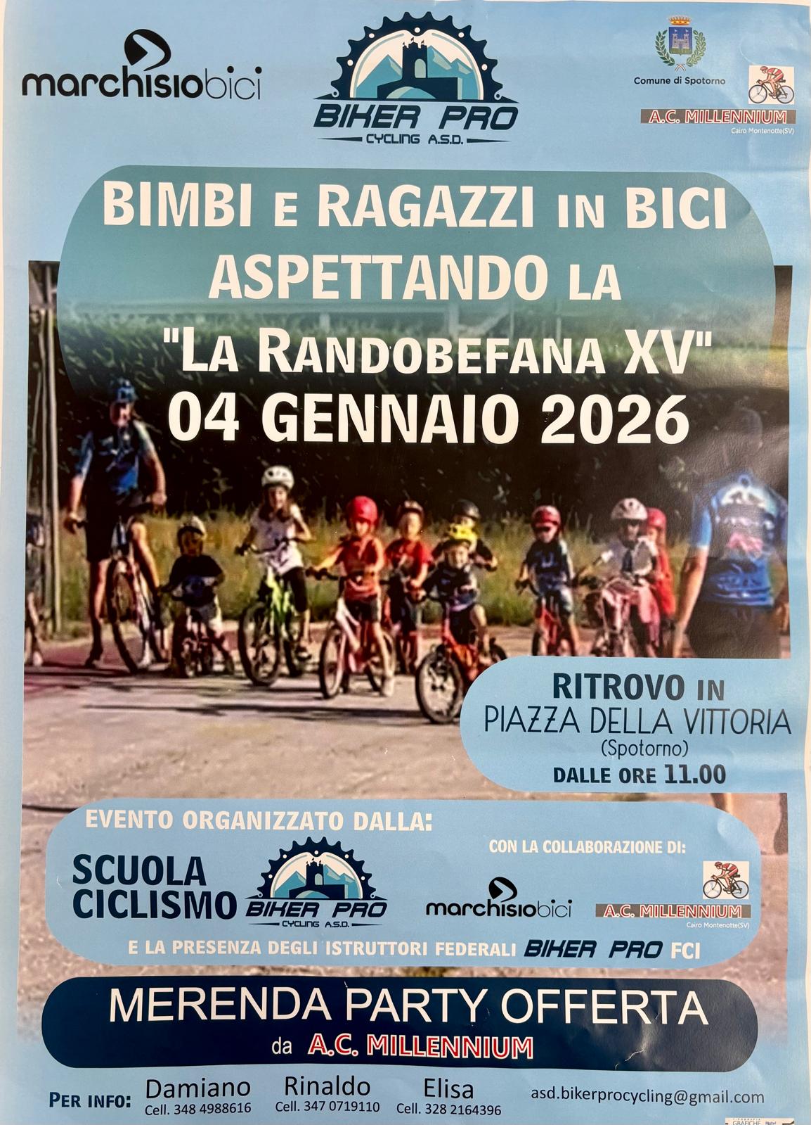 La Scuola Ciclismo Biker Pro Cycling ASD insieme a A.C. Millennium Cairo Montenotte hanno organizzato in concomitanza con la XV ediz. della Randobefana di Spotorno, 'Aspettando la Randobefana': un momento