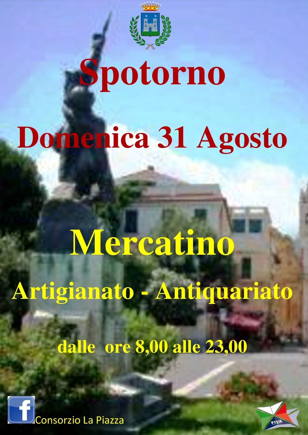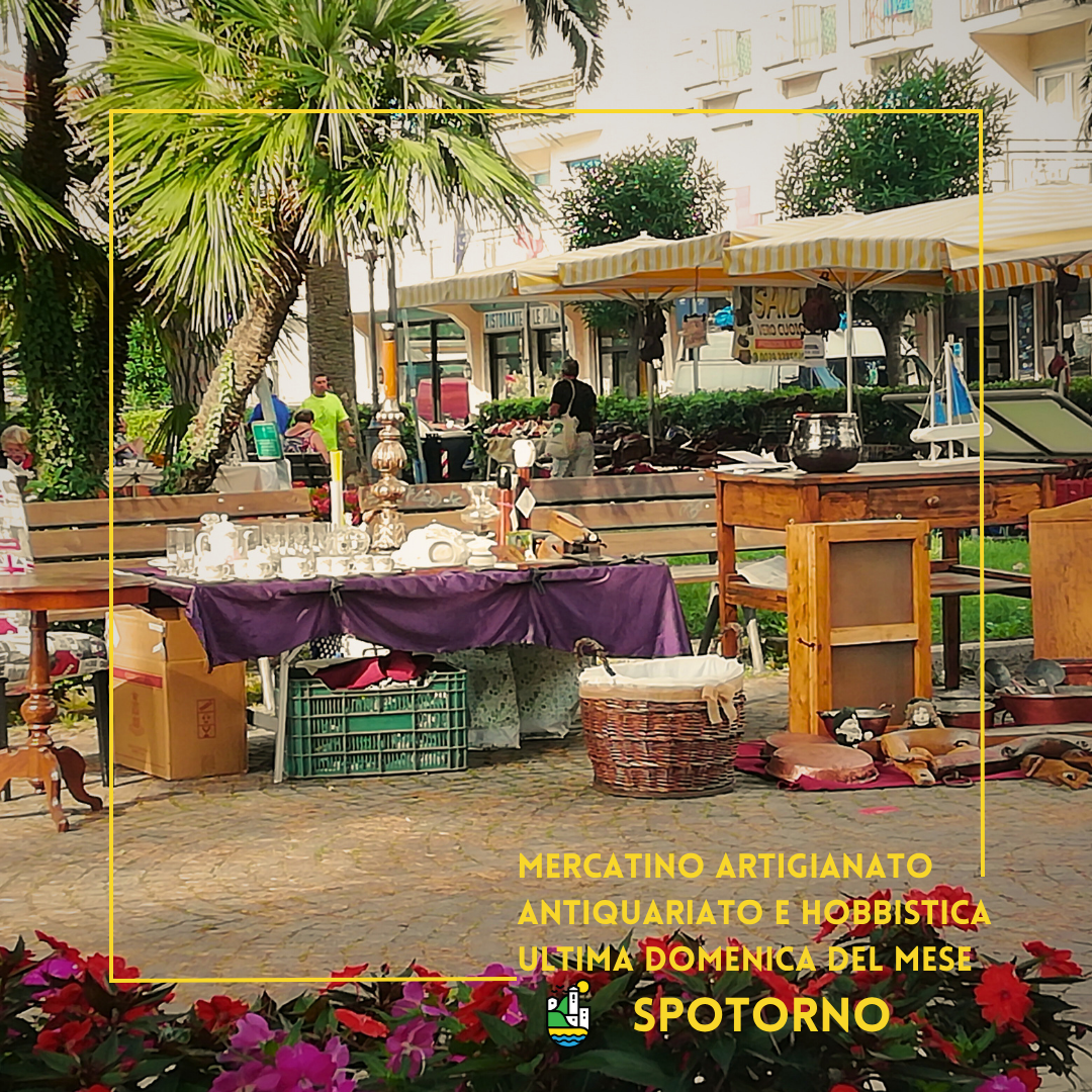 Tutte le ultime domeniche del mese presso i giardini pubblici centrali, Spotorno ospita il mercatino dell'artigianato e antiquariato Orario indicativo 8.00 -23.00