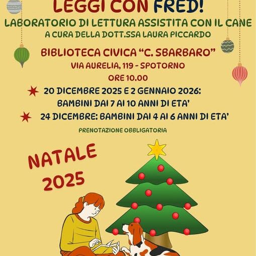 Presso la Biblioteca Civica “C. Sbarbaro” a Spotorno si terranno i Laboratori di lettura assistita con il cane “Leggi con…
