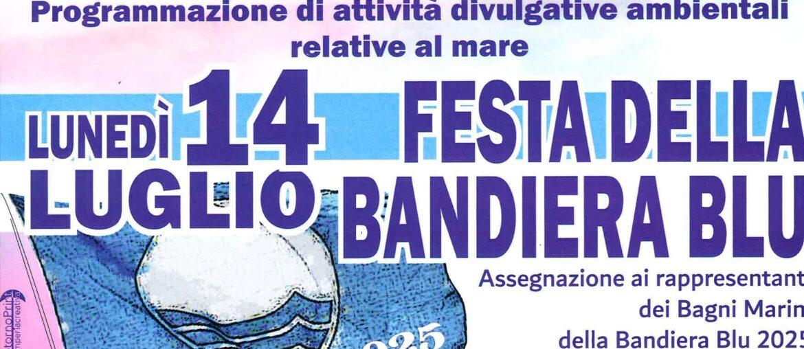 Lunedì 14 luglio ore 21.30 in Piazza della Vittoria, assegnazione ai rappresentanti dei Bagni Marini della Bandiera Blu 2025 ottenuta…