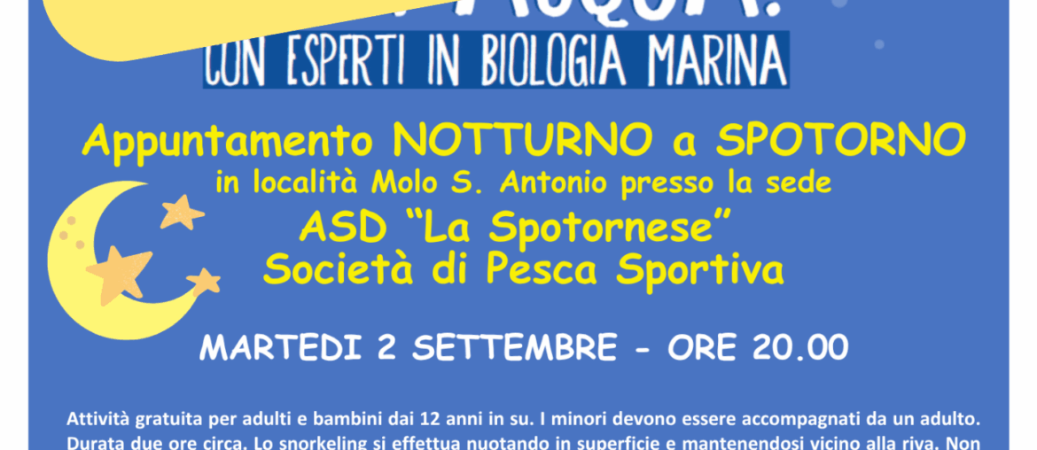 Appuntamento notturno a Spotorno con lo snorkeling del Centro Educazione Ambientale Riviera del Beigua con esperti in biologia marina. Giovedì…