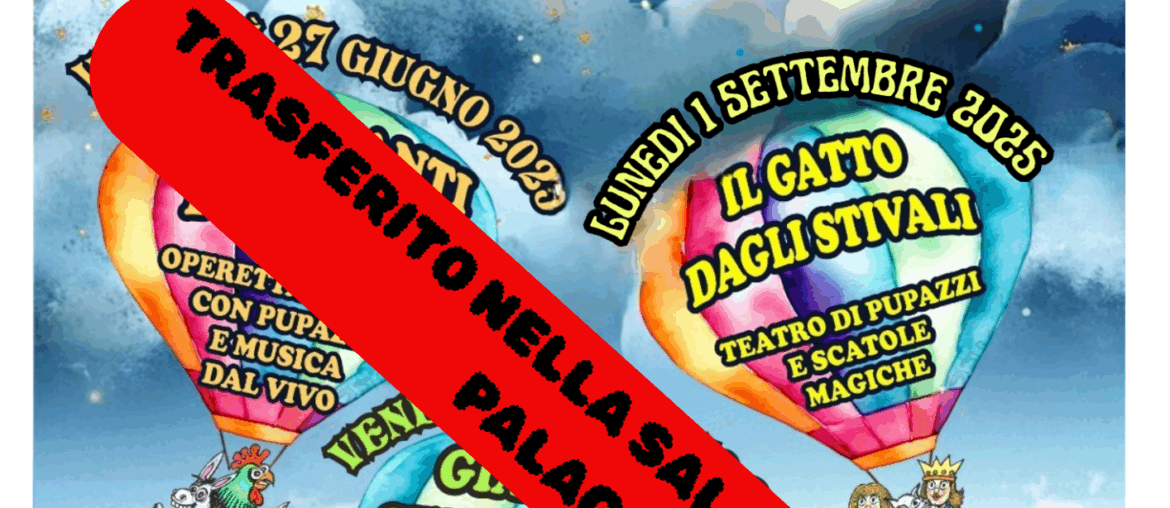 Lunedì 1 Settembre, per la rassegna La Corte delle Nuvole, ci sarà lo spettacolo “Il gatto dagli stivali”. Teatro di…