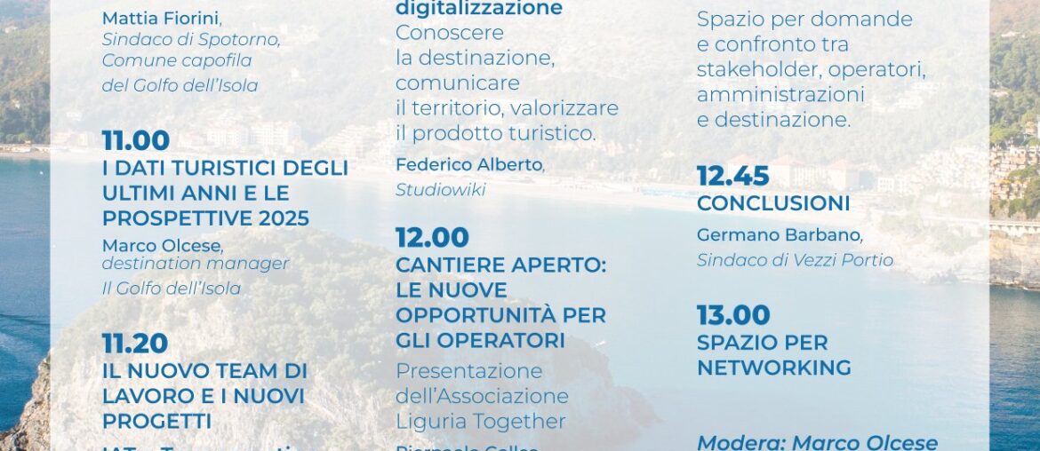 Martedì 15 Aprile presso La Casa del Turismo di Spotorno incontro dal titolo ‘Costruire insieme la destinazione – Incontro con…