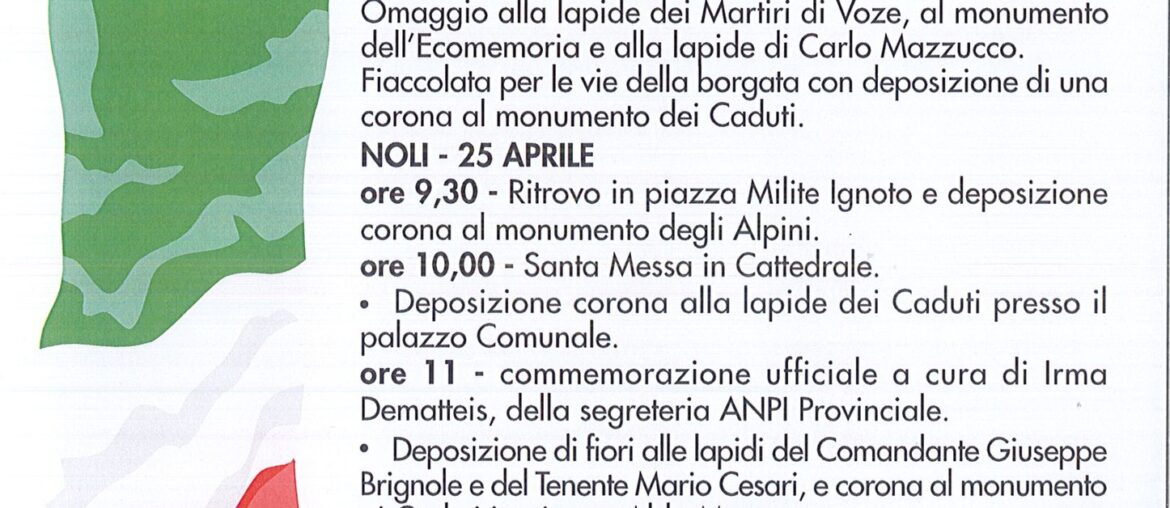Voze – 24 Aprile ore 20.30 Omaggio alla lapide dei Martiri di Voze, al monumento dell’Ecomemoria e alla lapide di…