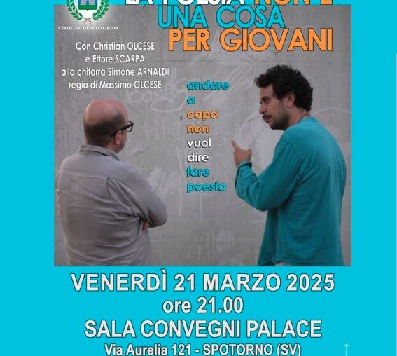 Venerdì 21 Marzo il Comune di Spotorno organizza un incontro/spettacolo dal tema: ‘La poesia non è una cosa per giovani-…
