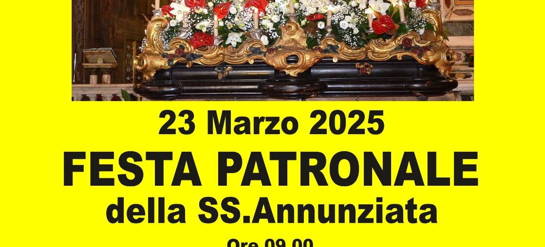 Festa Patronale della SS Annunziata domenica 23 Marzo: ore 9.00 S. Messa c/o Oratorio SS Annunziata ore 15.00 Processione per…