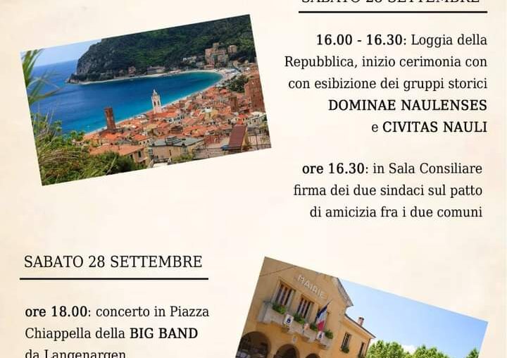 Ore 18.00 in Piazza Chiappella a Noli, concerto della “BIG BAND di Langenargen” a cura dell’Associazione Amici d’Europa, con la collaborazione…