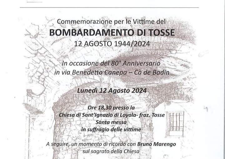 Domenica 12 agosto alle ore 18.30 presso la Chiesa di Sant’Ignazio di Loyola di Tosse (frazione di Noli) commemorazione per…