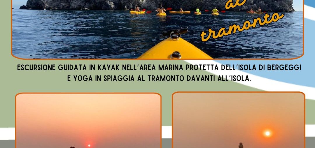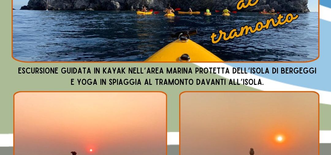 Escursione in kayak nell’Area Marina Protetta dell’Isola di Bergeggi e sessione di yoga in spiaggia davanti al tramonto. Possibile partecipare…