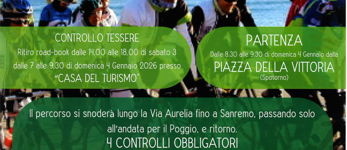 Domenica 4 gennaio 2026 si terrà “La Randobefana XV” Il percorso si snoderà lungo la Via Aurelia fino a Sanremo,…