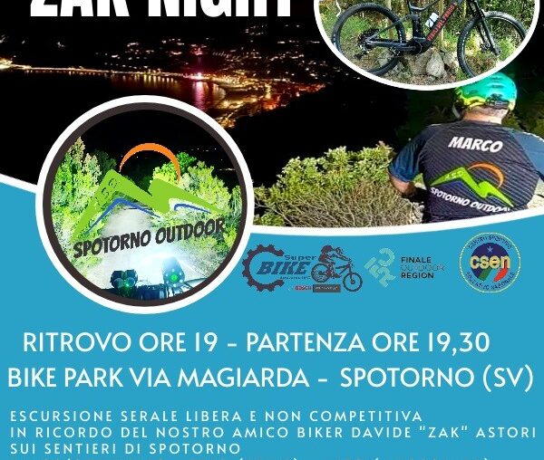 Escursione serale libera e non competitiva in ricordo del nostro amico biker Davide ‘Zak’ Astori sui sentieri di Spotorno Ritrovo…