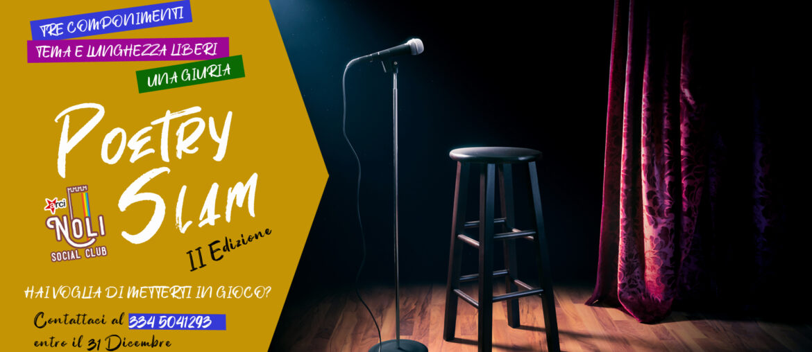 Poetry Slam: gara di poesia organizzata da Noli Social Club. Ore 21.00 presso il Teatro Defferrari di Noli