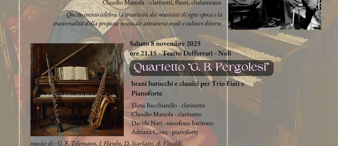 Per celebrare S. Cecilia, patrona dei musicisti, l’Associazione Filarmonica Amici dell’Arte di Noli, Teatro Defferrari, Associazione G.B.Pergolesi di Vallecrosia e…