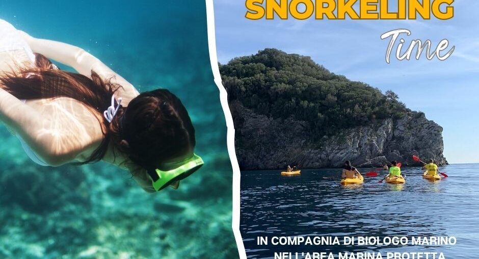 Escursione guidata in kayak nell’area marina protetta Isola di Bergeggi in compagnia di Guida GAE farete il bagni con maschera…