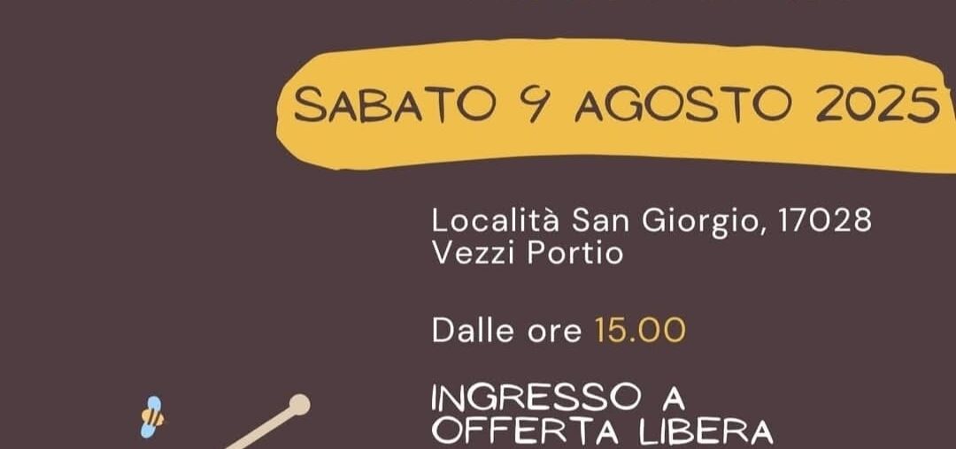 Sabato 9 agosto dalle ore 15.00 “Visita guidata al museo delle api dell’apiario Benedettino di Finalpia a Vezzi Portio” Ingresso…