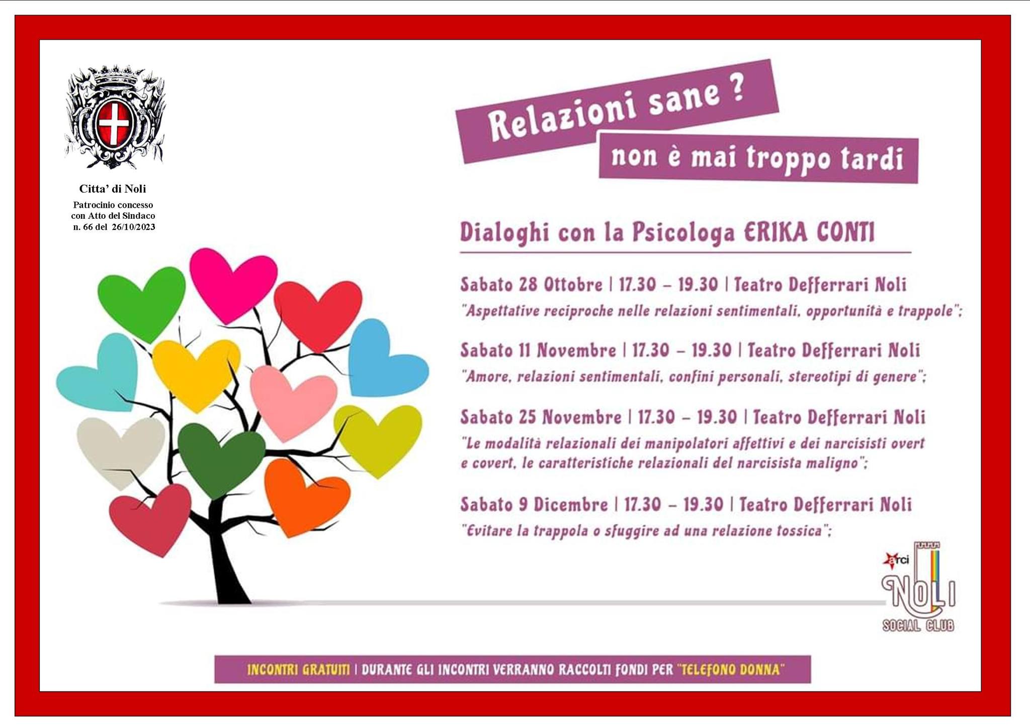 Noli Social Club con il patrocinio della Città di Noli organizzano una serie di incontri con la Psicologa Erika Conti: