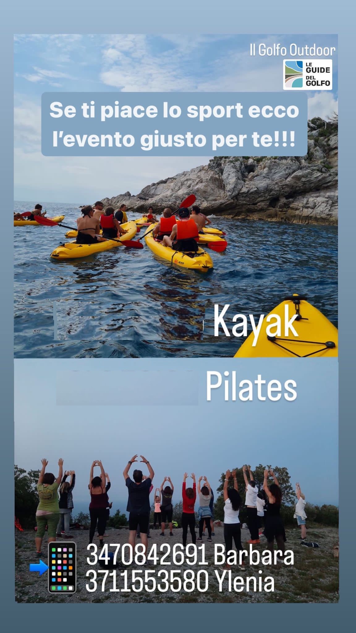 Pilates ore 06.20 a seguire escursione in kayak con bagno all’isola
