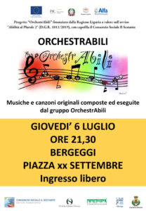 Progetto “OrchestrAbili” finanziato dalla Regione Liguria a valere sull’avviso “Abilità al Plurale 2” (D.G.R. 1011/2019) con capofila il Consorzio Sociale Il Sestante